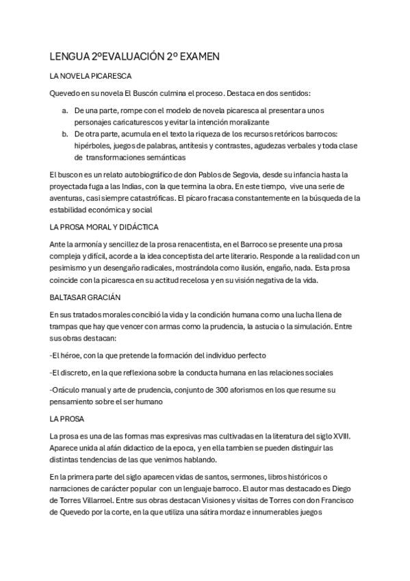 Lengua contenidos 1ºbach: novela picaresca, prosa moral y didáctica, la prosa del S.XVIII, Baltasar Gracián, Quevedo y el ensayo Lengua-> argumentación y pronombres