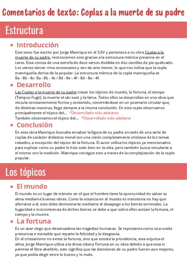 Apuntes Coplas a la muerte de su padre y comentarios de algunos de sus textos