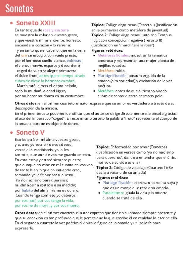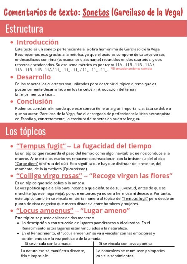 Apuntes Sonetos (Garcilaso de la Vega) y comentarios de algunos de sus textos