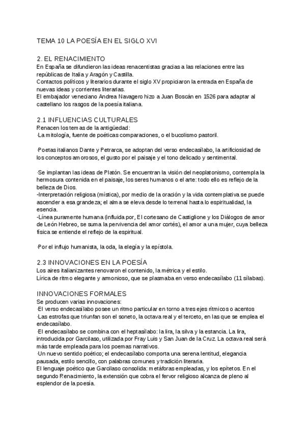 CreadoresApuntes literatura 1ºBach Tema 11: POESÍA DEL RENACIMIENTO (Libro: Lengua castellana y Literatura 1 BA Lengua cooficial LOMLOE CASALS)