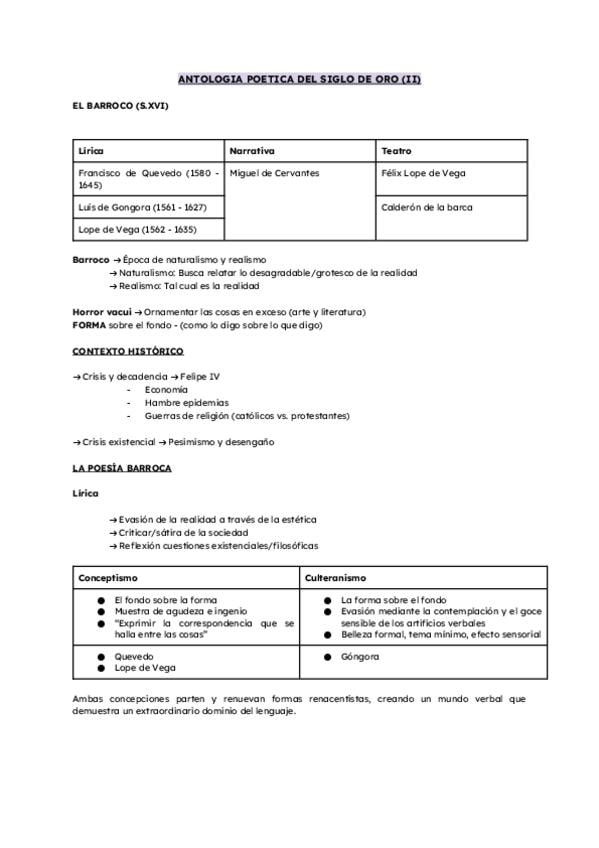 Apuntes completos del tema de literatura barroca de 1º de Bachillerato (Andalucía, España)