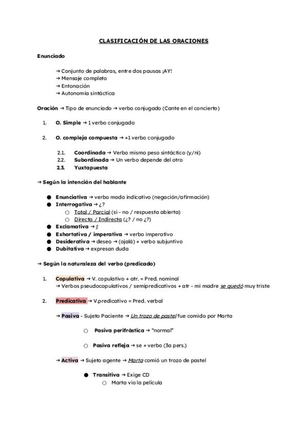 Clasificacion de las oraciones segun el hablante y la naturaleza del verbo