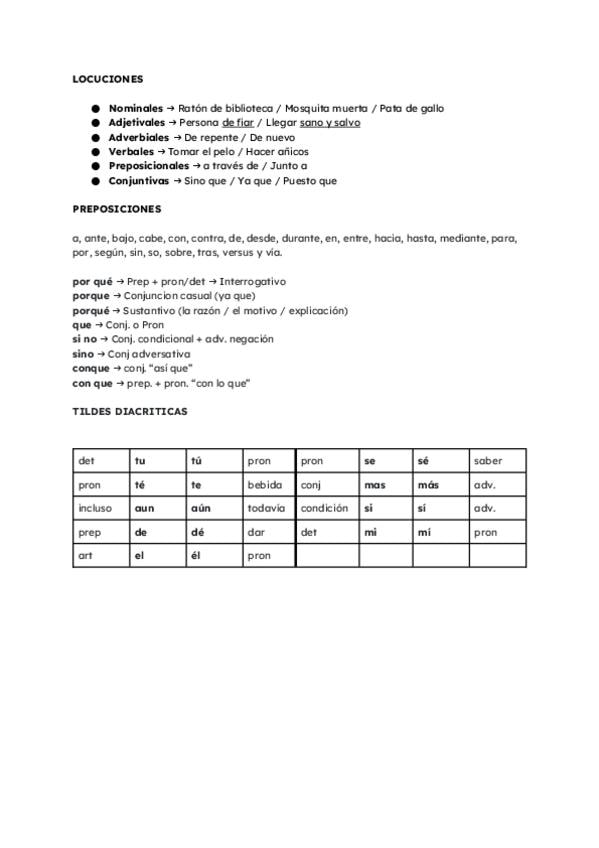 Ortografia - Locuciones, preposiciones y tildes diacríticas