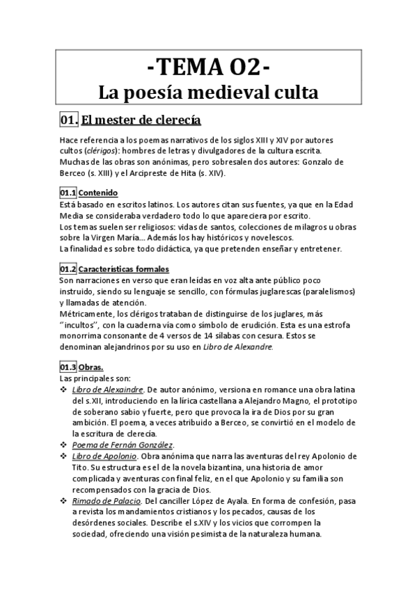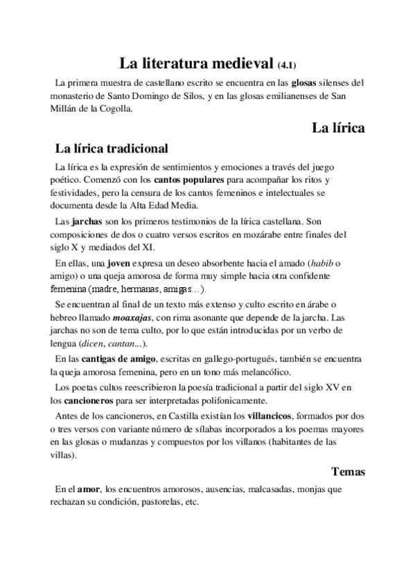 Temas 2 y 4 - Literatura medieval