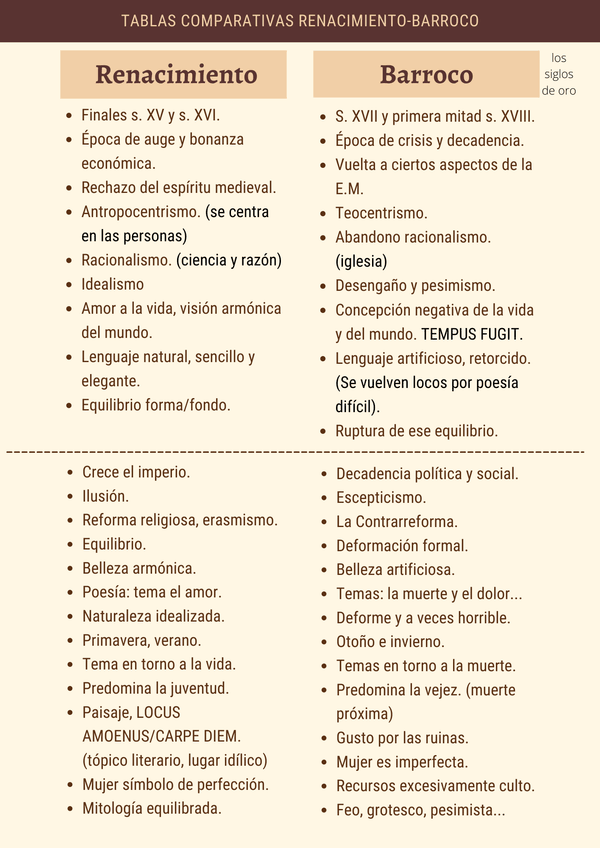 TABLAS COMPARATIVAS RENACIMIENTO-BARROCO
