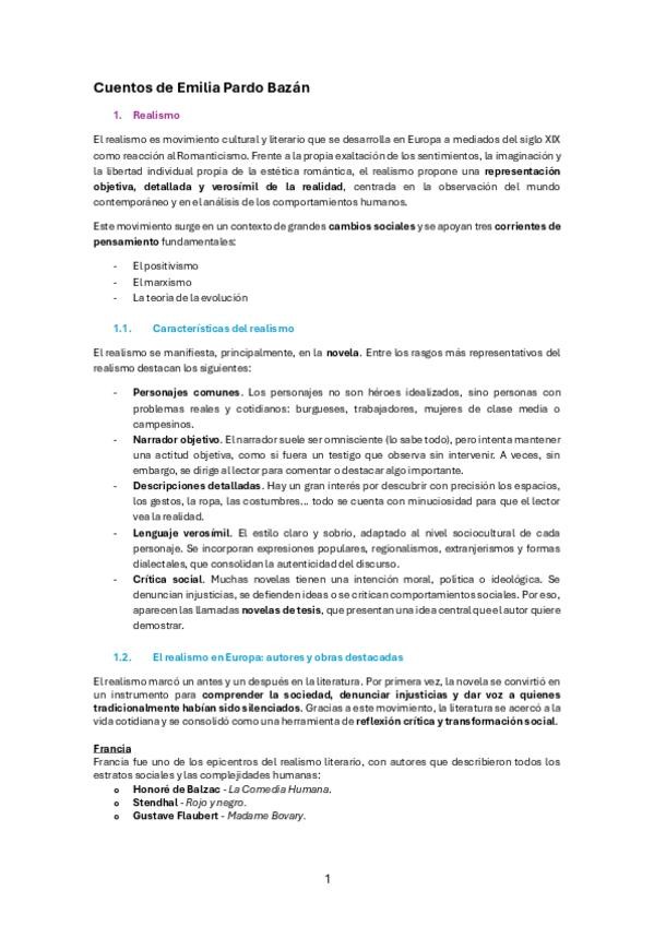 Características del naturalismo y realismo junto a los resúmenes de cada cuento que entra para la PAU de Emilia Pardo Bazán
