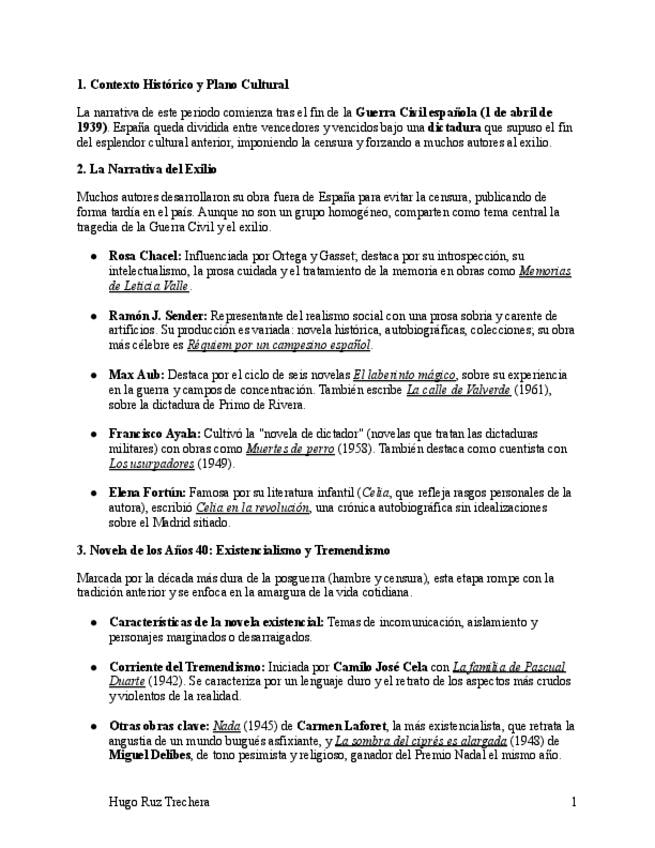CreadoresApuntes sobre la narrativa de posguerra desde 1939 hasta 1975. Resumen para la PAU.