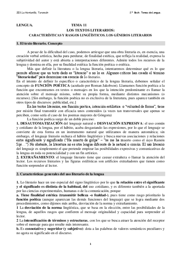 Apuntes comentario de texto lengua