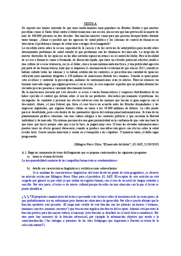 Comentarios de texto y argumentaciones