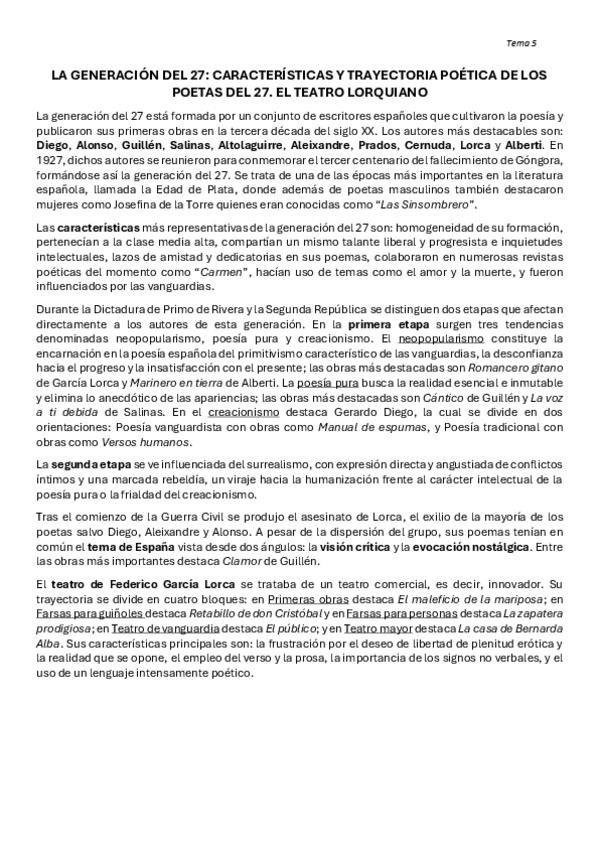 Tema 5: LA GENERACIÓN DEL 27. CARACTERÍSTICAS Y TRAYECTORIA POÉTICA DE LOS POETAS DEL 27. EL TEATRO LORQUIANO.pdf.pdf