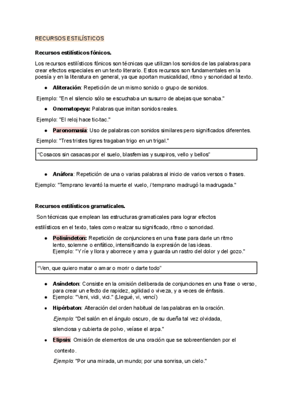 Recursos etilísticos con ejemplos.