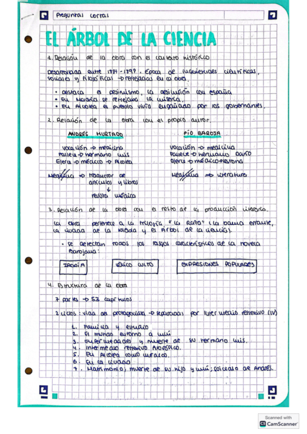 Preguntas cortas de “El árbol de la ciencia”, preguntadas repetidas veces en selectividad en Andalucía.