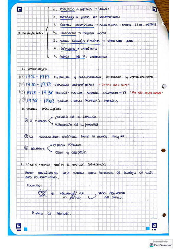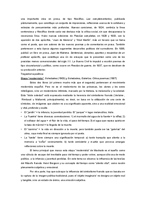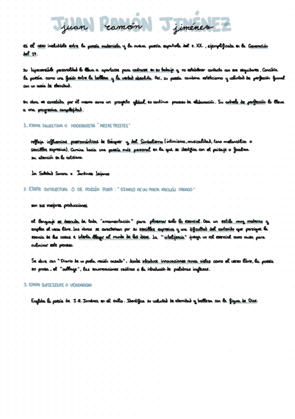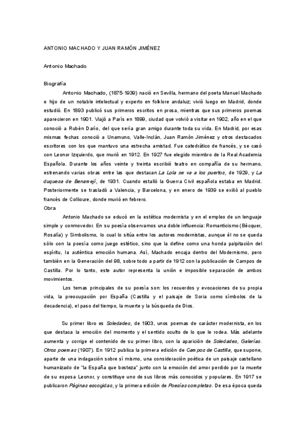 Apuntes Antonio Machado y Juan Ramón Jiménez, Lengua y literatura 2bac