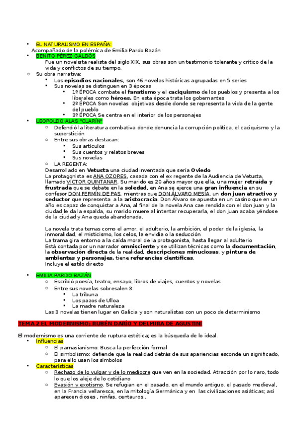 Apuntes del Realismo y Naturalismo esquemáticos aunque muy completos.