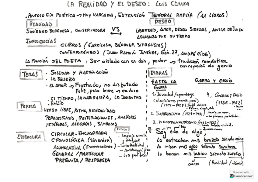 La realidad y el deseo (Luis Cernuda): antología poética, función del poeta, temas, forma, estructura y etapas.