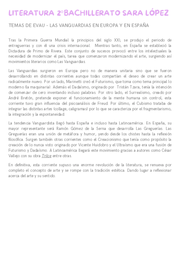 Siguiente epígrafe de literatura, Las Vanguardias en España e Hispanoamérica. Mucho ánimo con literatura :)