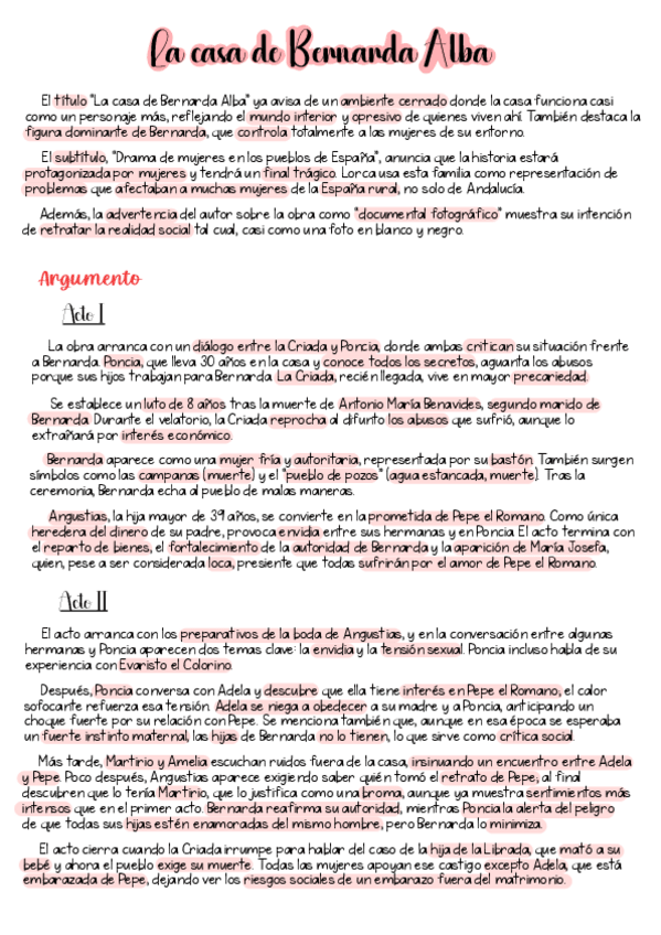 La casa de Bernarda Alba: introducción, título o subtitulo, tema, estructuras, espacio, personajes y símbolos.