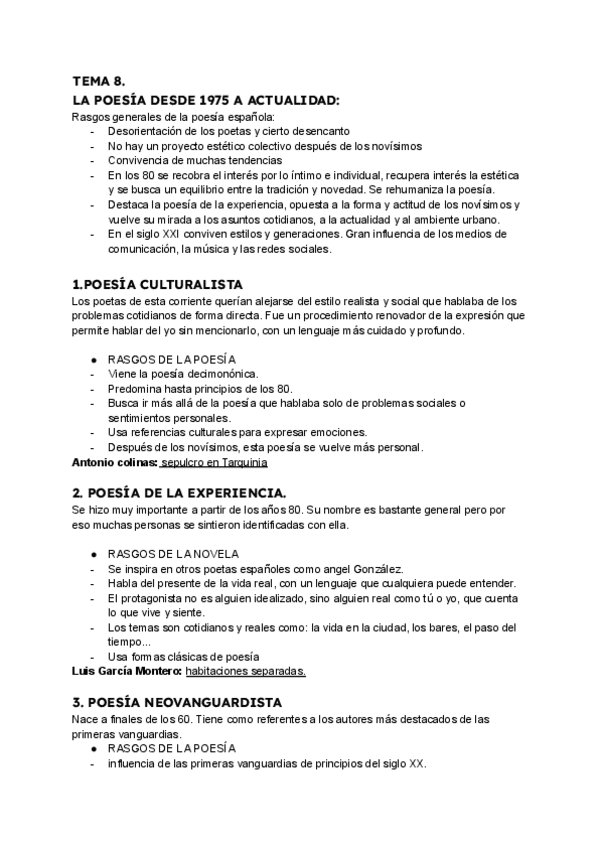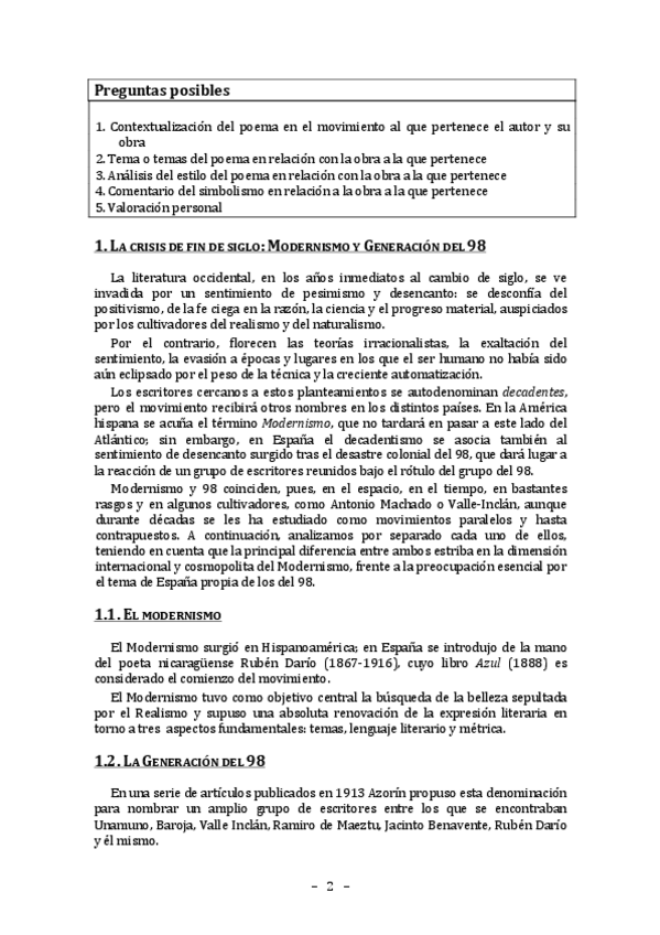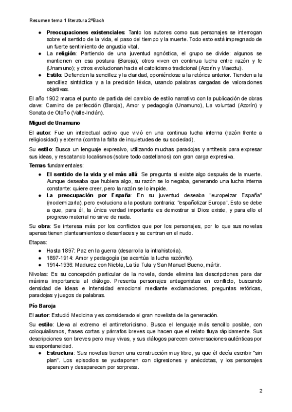 Resumen del primer tema de literatura de 2°Bachillerato.