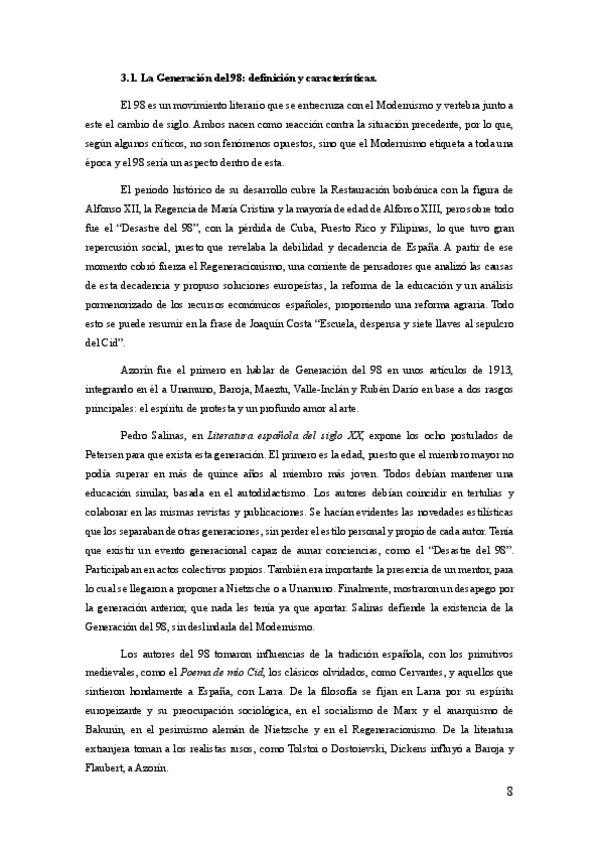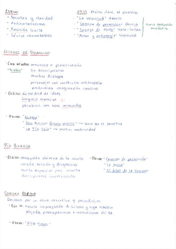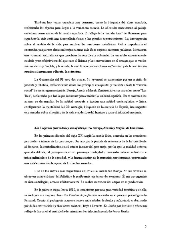 Resumen de la Generación del 98 y la obra de Baroja, Azorín y Unamuno separado por bloques para responder al desarrollo del tema en el examen de la PAU de Lengua Castellana y Literatura o simplemente para apuntes de clase. También para las características
