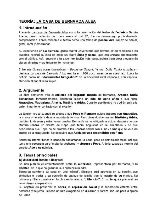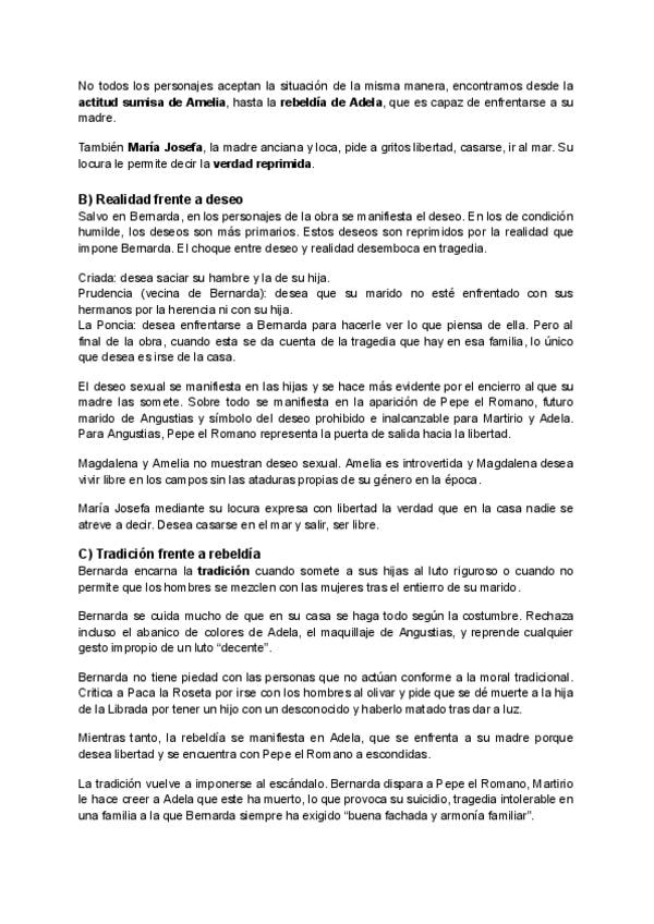 Aquí os dejo explicados todos los personajes, temas y estilo de la Casa de Bernarda Alba + un resumen más corto de todo