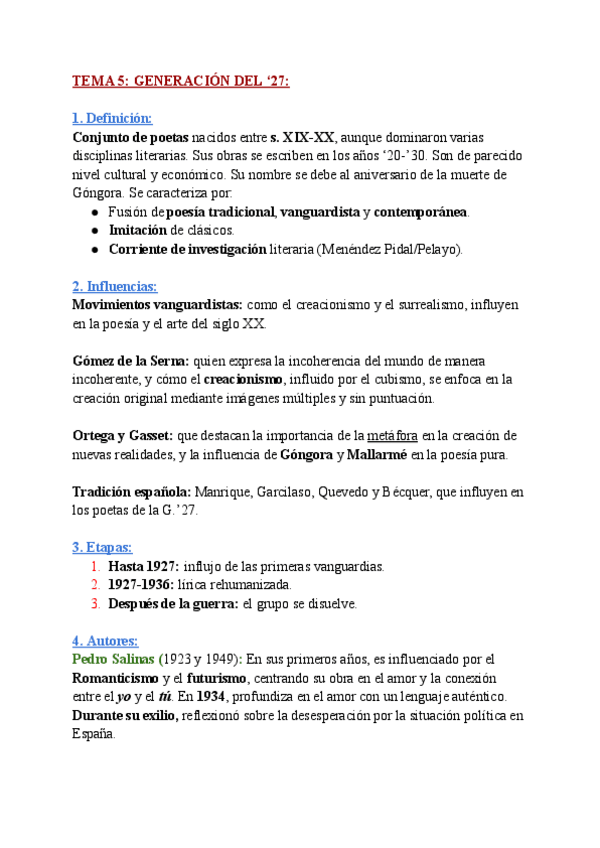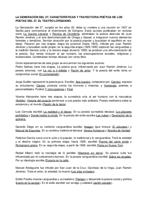 Tema 5 de literatura para la PAU, Generación 27 (tema muy frecuente en la PAU). Corregidos por profesor.