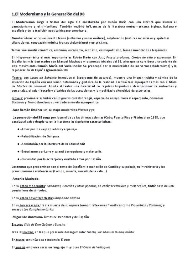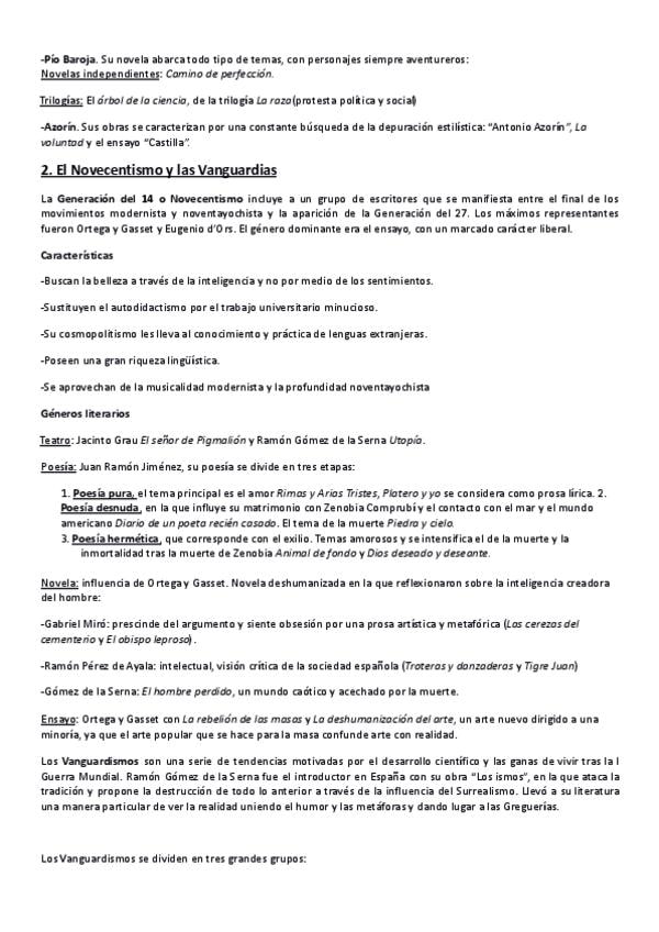 tema 3. Novecentista mo generación del 14 novela y ensayo novecentista y Juan Ramón Jiménez Lengua castellana y literatura de 2 bach y PAU
