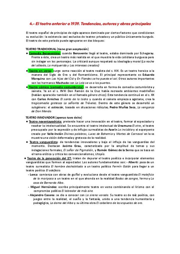 tema 2 literatura pau . La novela y el teatro anterior a 1936.