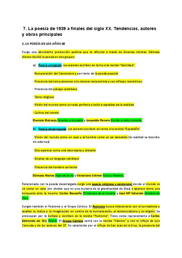 Tema 6: Lírica y teatro posteriores a 1936 Tema 7: novela española desde 1939
