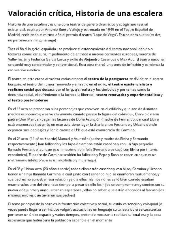 Historia de una escalera, Antonio Buero Vallejo, pregunta de 1 punto en la PAU