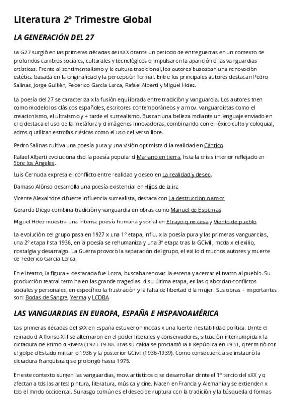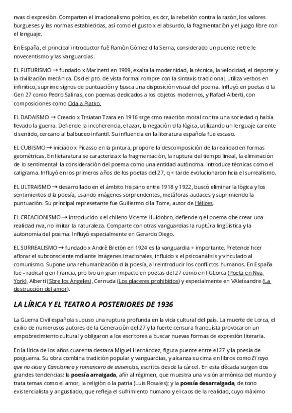 En este documento se encuentra resumido: la generación del 27, las vanguardias y la lírica y posteriores del 36'