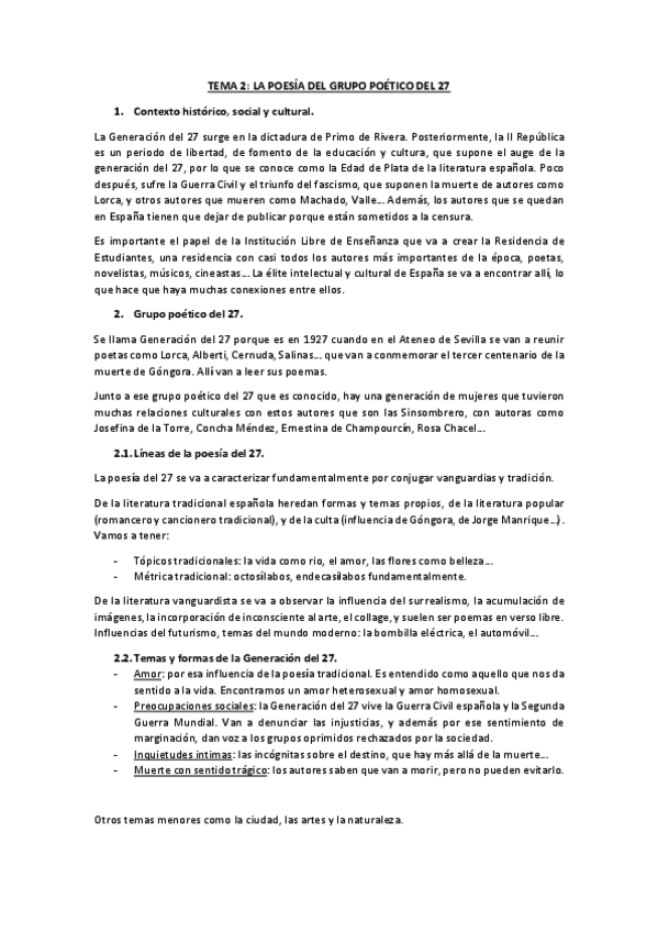 Temas de literatura desarrollo. EBAU