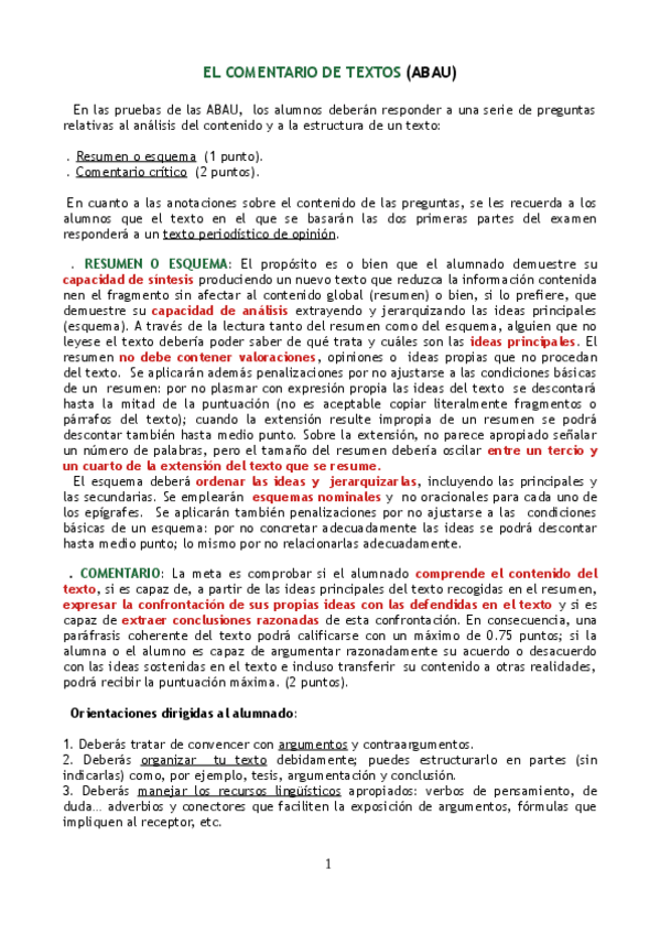 Comentario y resumen