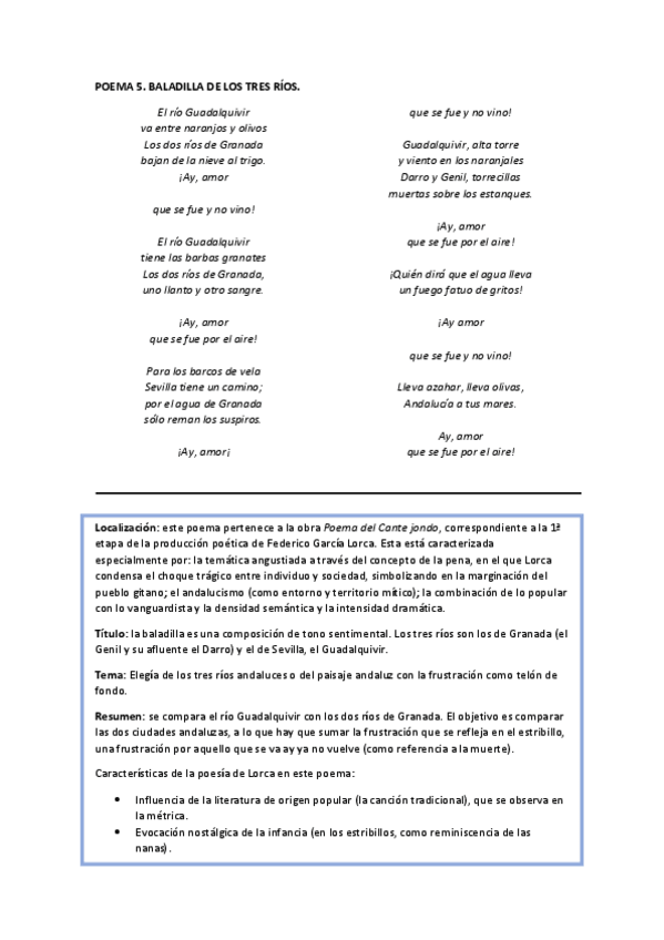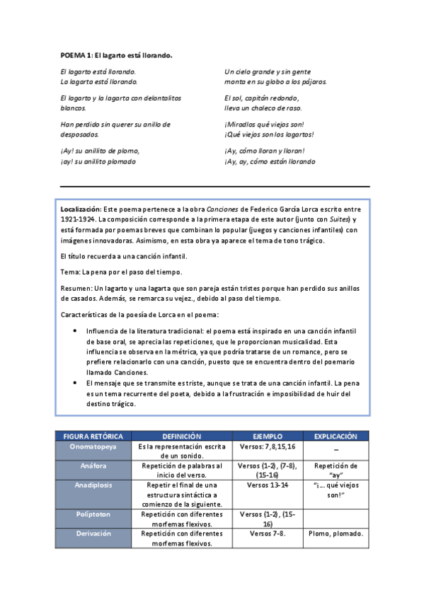 Poemas con sus características, tema, resumen. Además, las figuras literarias y se contestan algunas posibles preguntas de selectivo.