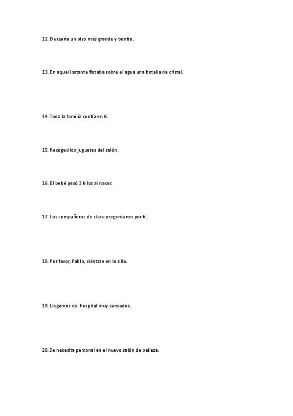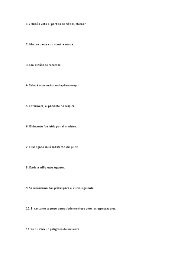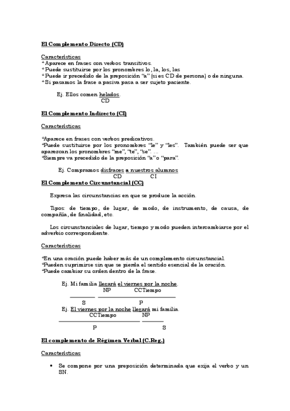 todos los complementos explicados, sujetos y predicados, el verbo, formas impersonales