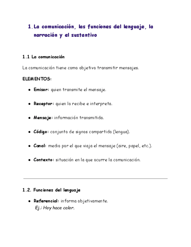 APUNTES: La comunicación, las funciones del lenguaje, la narración y el sustantivo