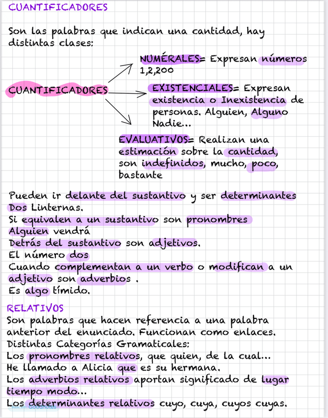 Apuntes de lengua sobre: Cuantificadores, relativos e interrogativos y exclamativos.