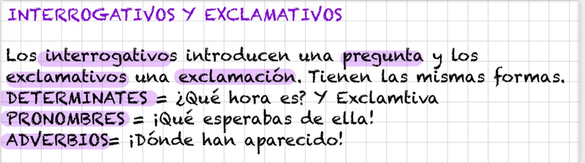 Cuantificadores, exclamativos e interrogativos y exclamativos.