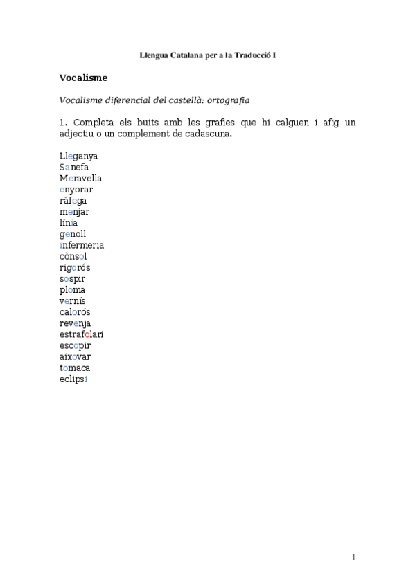 He publicado nuevos ejercicios de 1º LENGUA CATALANA PARA LA TRADUCCIÓN I: Solucionari-vocalisme.pdf