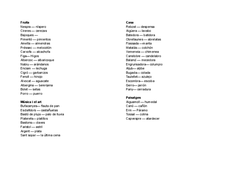 Apuntes escritos catalán voc y gramática
