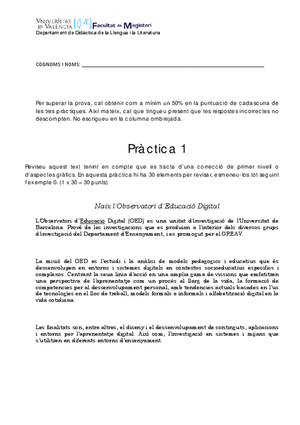 He publicado nuevos examenes de 1º Lengua Catalana Para Maestros: Model-examen-D.pdf
