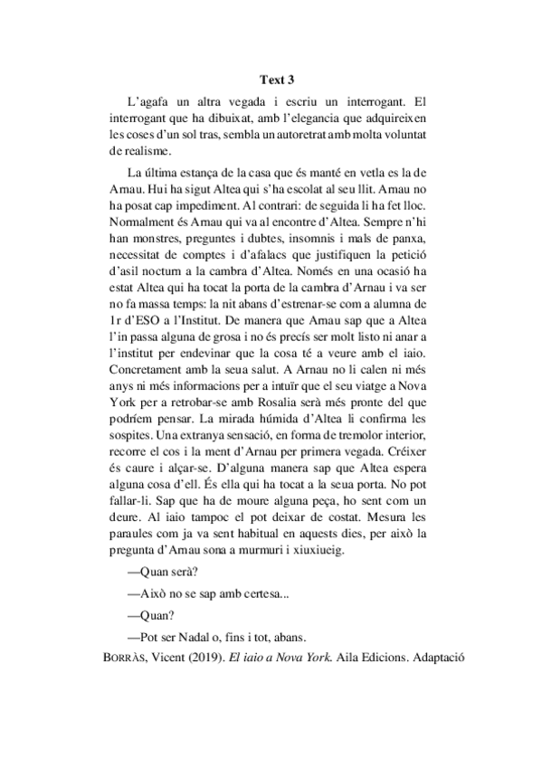 En aquest examen hi ha que llegir un libre de los seleccionats i contestar a apuestes preguntes