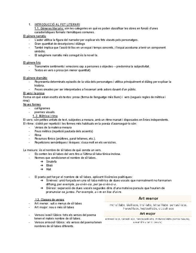 Resum complet de literatura catalana de primer de batxillerat