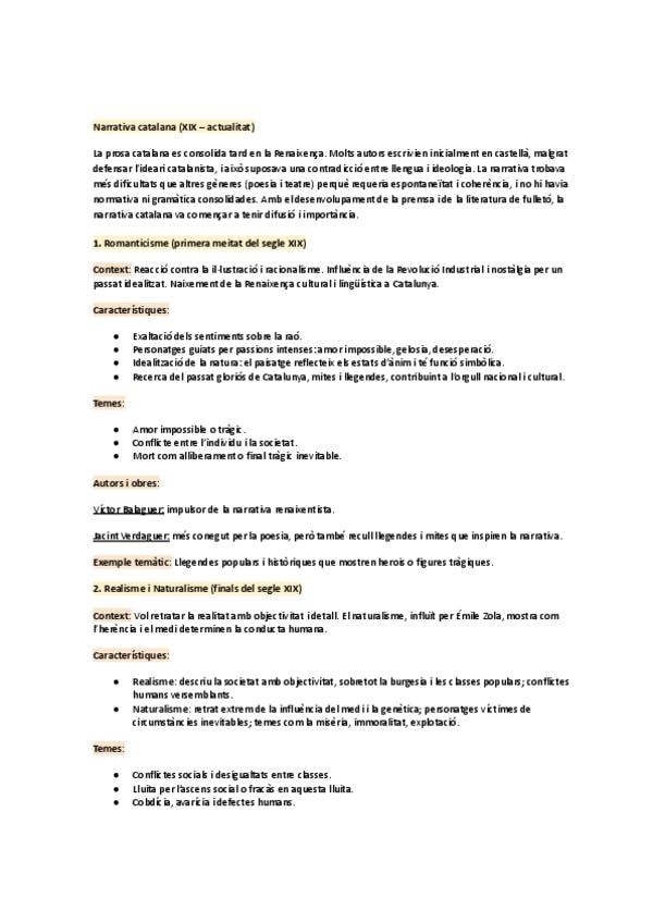 Resum que em va servir per estudiar literatura catalana per a la selectivitat