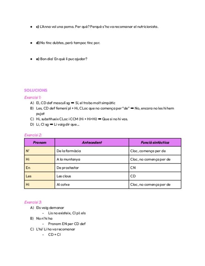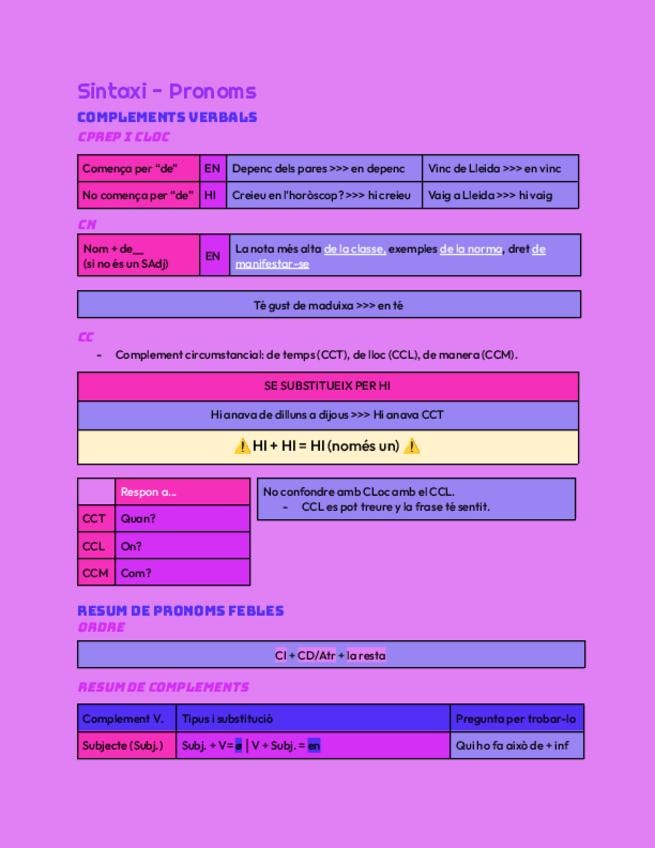 Resum de sintaxi i pronoms febles, conté: CPrep (també conegut com CRV), CLoc, CN, CC, repàs de pronoms febles i errades comunes català-castellà