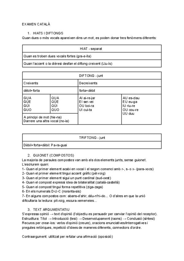 Aquí está la explicación sobre los diftongos y hiatos, el uso de guión en las composición de palabras y el texto argumentativo y sus tipos.