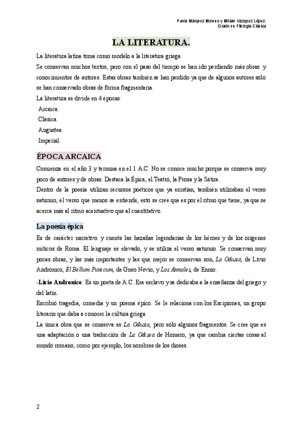 He publicado nuevos apuntes de 1º Lengua Clásica (Latín): Literatura-latina.pdf