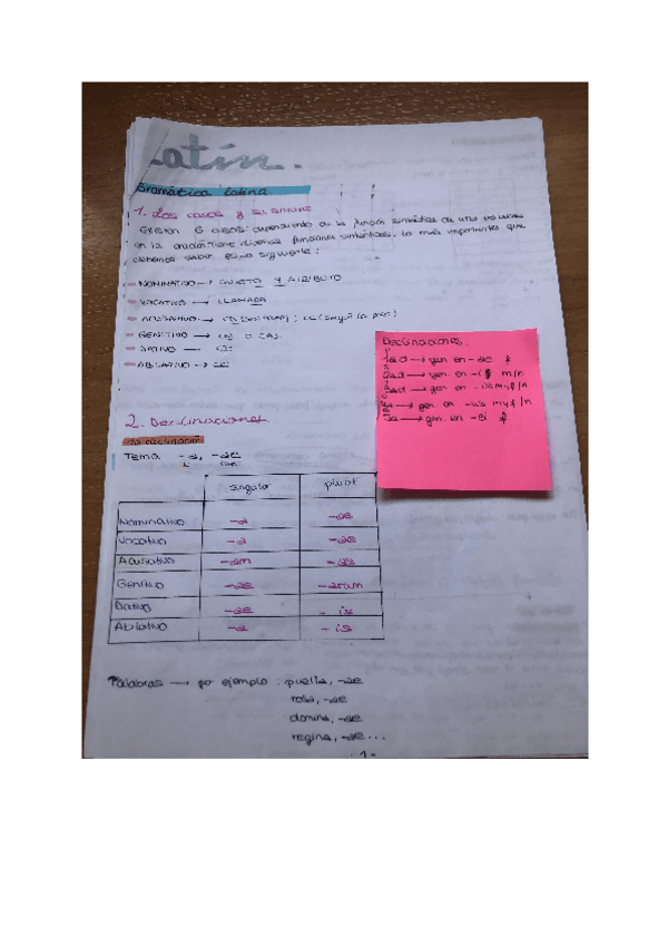 He publicado nuevos apuntes de 1º Lengua Clásica (Latín): Declinaciones.pdf