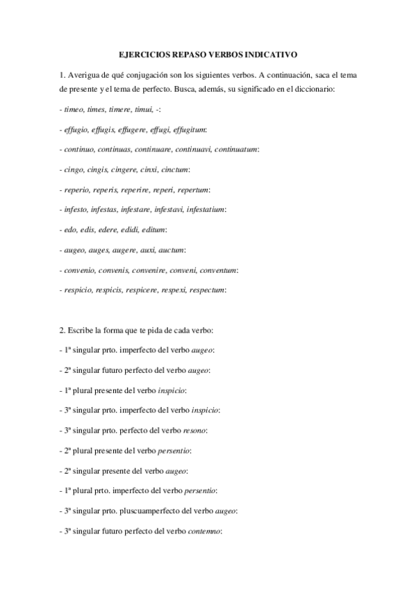 He publicado nuevos ejercicios de 1º Lengua Clásica (Latín): Repaso-VERBOS-INDICATIVO.pdf