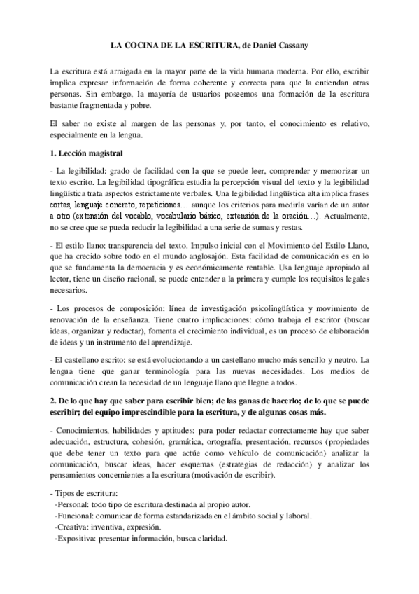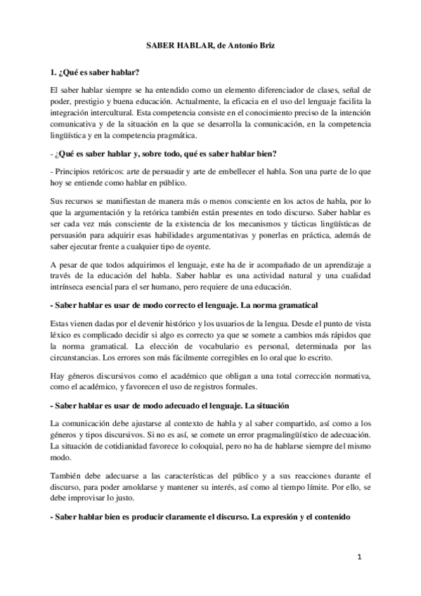 Resumen de Saber hablar y de La cocina de la escritura