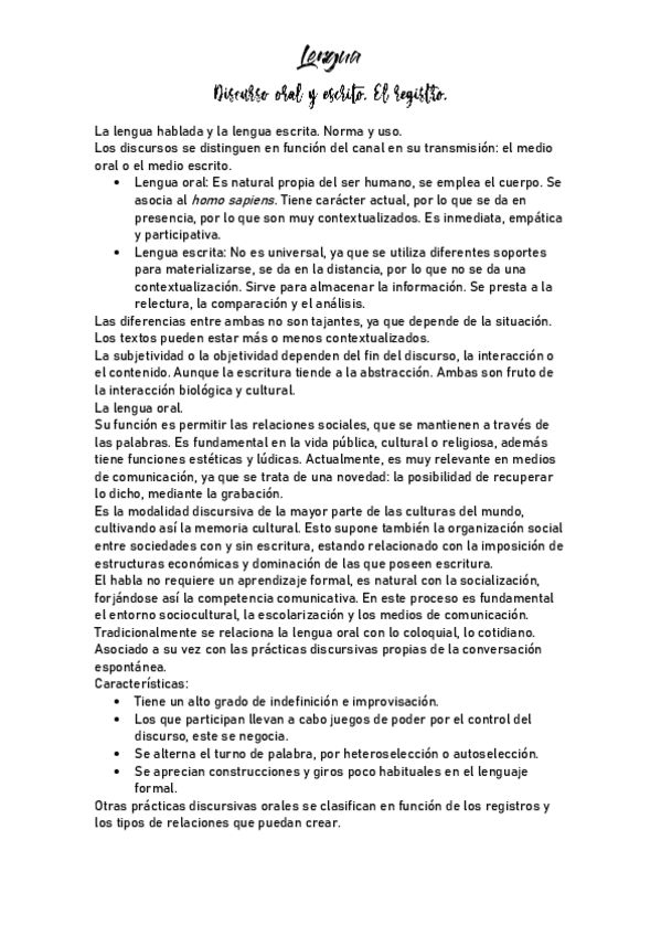 Apuntes completos de la asignatura Lengua Española: Expresión Oral y Escrita del primer curso del Grado en Estudios de Asia y África de la UAM.
